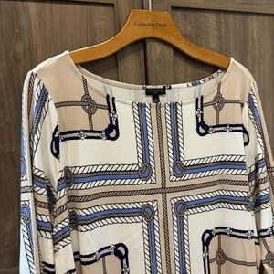 Talbots 1X Top Nautical Rope Print Stretch 3/4 Sleeve