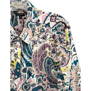 Talbots 1X Watercolor LS Tab Sleeve Paisley Button Up Blouse Shirt Top Plus