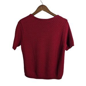 Talbots 2 Pc Set Red Cable Knit Top Cardigan Cotton Blend Made in the USA Sz PS