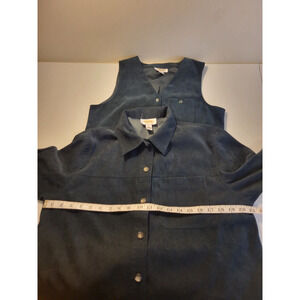 Talbots 2 Piece Suit Green Velvet Button Down Shirt & Dress Women's Size 6 Petite