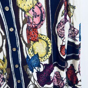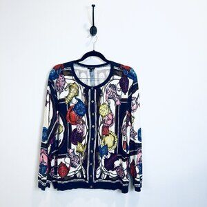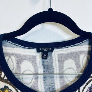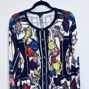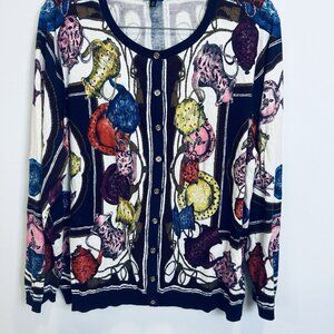 Talbots 2X Button Down Cardigan Sweater Top Tea Kettle Printed Cotton Rayon