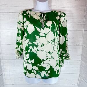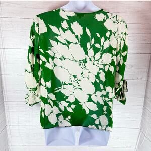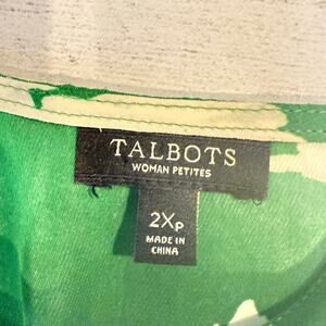 Talbots 2XP green white Floral Cottage Coquette women peasant Blouse Petite fall