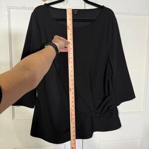 Talbots 3/4 Sleeve Faux Wrap Blouse Scoop Neck Black Size 3X Stretch Lagenlook