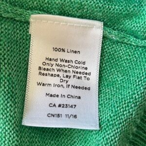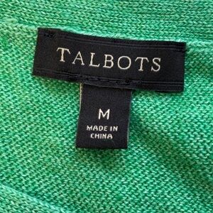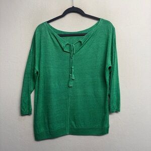 Talbots 3/4 Sleeve Green 100% Linen Tassel Tie Back Sweater Blouse Scoop Neck M
