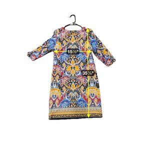 Talbots 3/4 Sleeve Jersey Paisley Shift Dress Multicolor Sz Medium Petite Boho