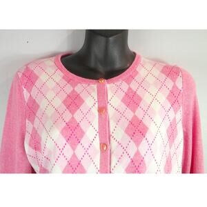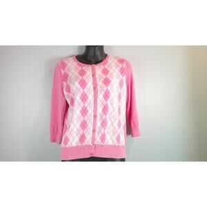 Add a touch of timeless charm to your wardrobe with this delightful Talbots cardigan! This 3/4 sleeve button-down features a lovely pink gingham pattern that's perfect for adding a pop of color to any outfit.