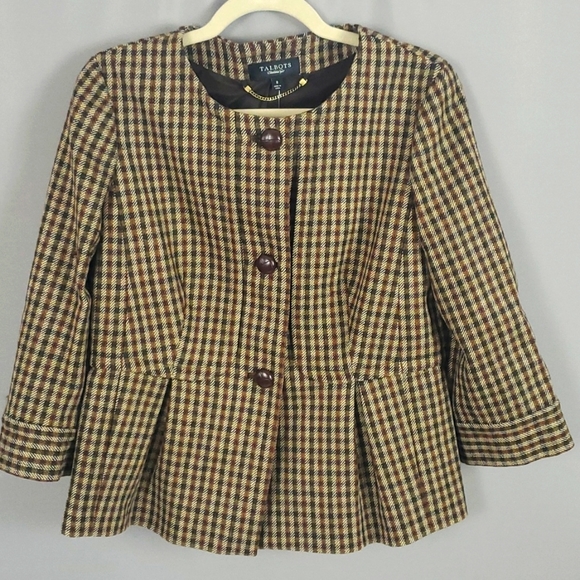 Talbots 3/4 Sleeve Plaid Blazer 100% Wool, Fully Lined, Size 8