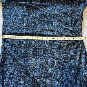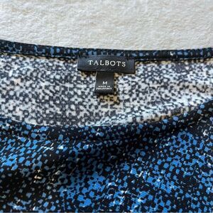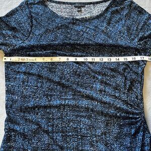 Talbots 3/4 Sleeve Ruched Waist Blue and Black Printed Slinky Sheath Dress Med