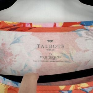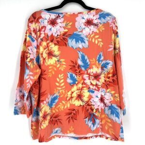 Talbots 3/4 Sleeve Shirt Knit Stretch Floral Orange Size 2X Feminine Tropical