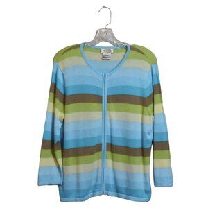 Talbots 3/4 Sleeve Zip Up Stripe Cardigan Size M