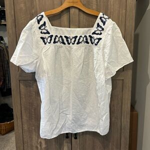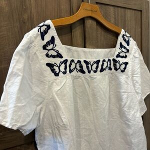 Talbots 3X BUTTERFLY EMBROIDERED LINEN COTTON SQUARE NECK TOP