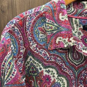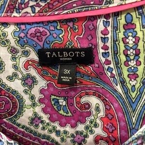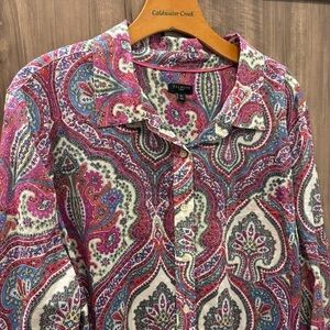 Talbots 3X Button Down Shirt Pink Paisley Lightweight Long Roll Tab Sleeves