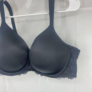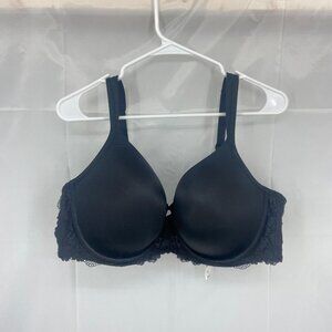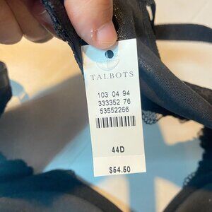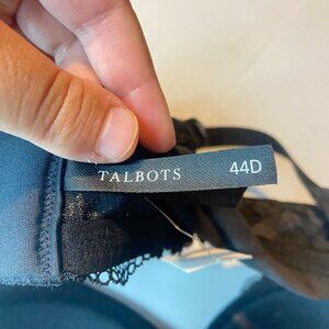 Talbots 44D Full Coverage T Shirt Bra Lightly Lined Black Lace Adjustable Straps