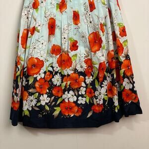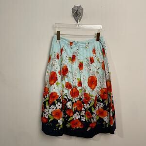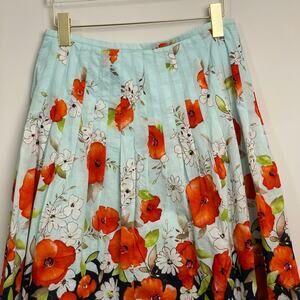 Talbots 6 midi skirt pleated floral poppies summer blue white garden party daisy
