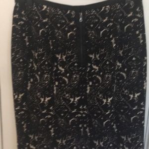 Black and cream print , lined and cute back zipper. Waist and zipper feature trimmed out with satiny cotton fabric.