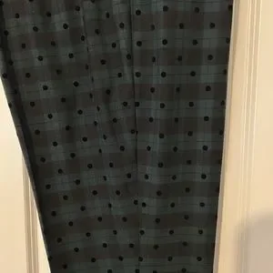 This is a great pant for the holidays. Get it while you can. Fabric is wool,polyester and spandex
