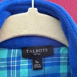 Talbots Women's Blue Quilted Full Zip Up Fleece Jacket Sweatshirt Size SP