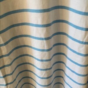 Looks like it hasn’t been worn. Belonged to my older sister. Blue and white stripes. Very short sleeves.