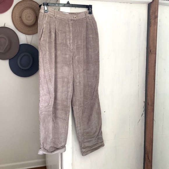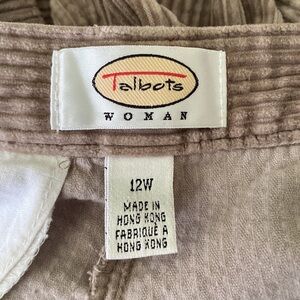 Talbots tan corduroy pleated front tapered leg pant with side pockets size 12W