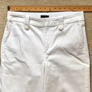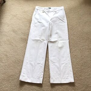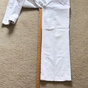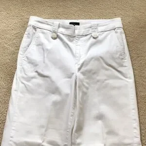 I would call these a slim wide leg. They are not overly wide in the thigh, but are very flattering. White denim with a neat trouser style but there are still jeans style back pockets. Excellent condition.