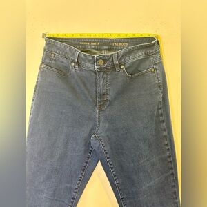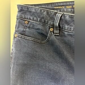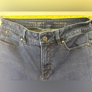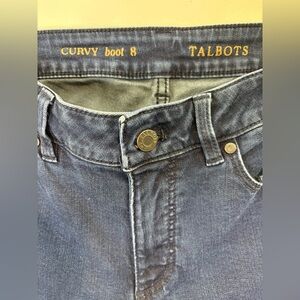 Elegant Talbots jeans with a curvy bootcut design. Timeless blue denim. Ideal for casual wear.