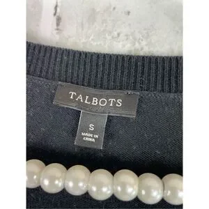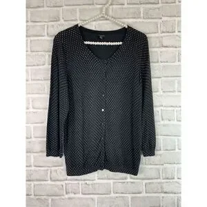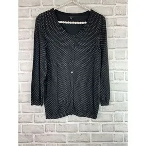 EUC Size Small Talbots Black and White Dotted Cardigan Sweater