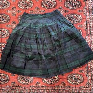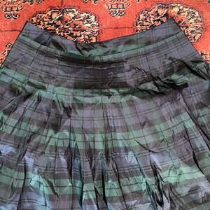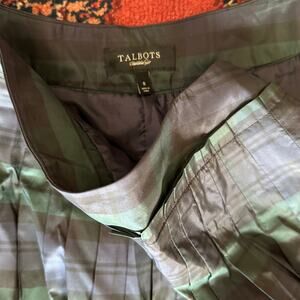 Talbots 8 Blue Green Tartan Pleated Silk Taffeta Skirt IMMACULATE!