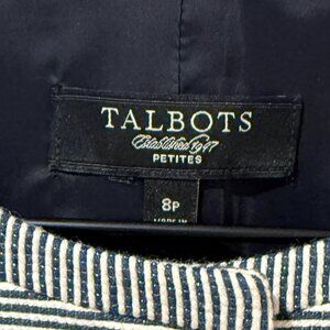 Talbots 8 Petite Cotton Ribbed Navy Blue White Striped Button Jacket Classic