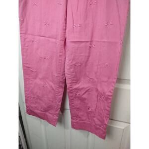 Talbots pink dragonfly designed flat front Capri pants in good condition. Zip button clasp close front pockets back button close pocket. Straight leg.