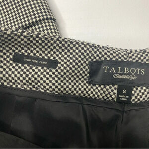 Talbots 8 Signature Flare Houndstooth Black White Cuffed Lined Wool Blend Pants