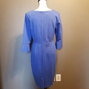 Talbots Womsne Size 8P 8 Petite Dress Blue Ponte Knit Knee Length 3/4 Sleeve Scalloped Trim Preppy Classic Minimalist Office Basic Capsule Wardrobe