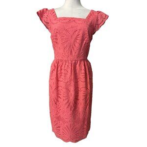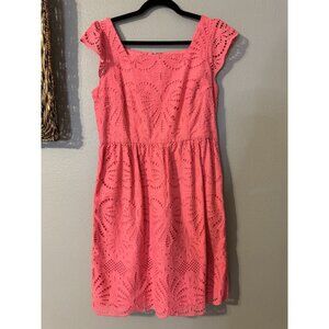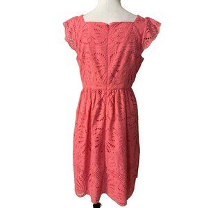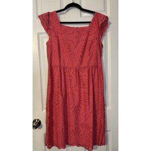 Talbots A Line Dress 12P Coral Pink Lace Flutter Sleeve 100% Cotton Washable