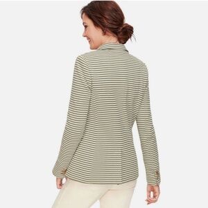 Talbots Aberdeen Knit Blazer Green and White Stripes 3/4 Sleeves