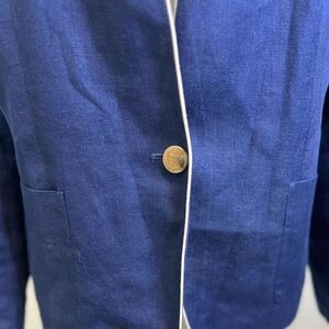 Talbots Aberdeen blazer 16 petite blue 100% linen long sleeve casual office