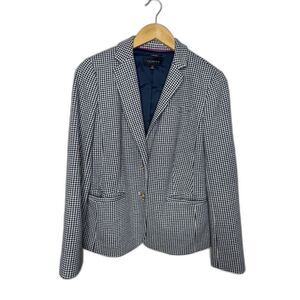 Talbots Aberdeen houndstooth blazer jacket navy size 6
