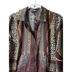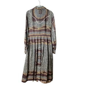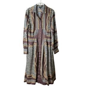 Talbots Animal Print & Chains Dress Earth Tones Size 6. In great condition. Button front. Long sleeve.
