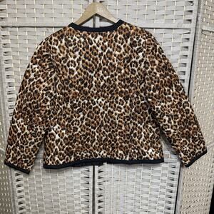 Talbots Animal Print Quilted Jacket Size L Cheetah Leopard Pockets Zip Front EUC