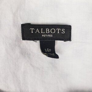 Talbots Size 14P Blue & White Applique Eyelet Embroidered Floral Ribbon Stripe Short Sleeve Top