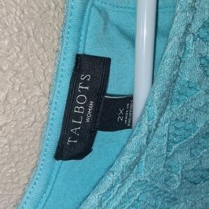 Talbots Aqua Tank Top With Lace Overlay 2X