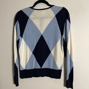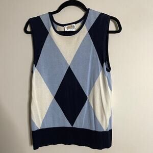 Talbots Argyle Cardigan & Sleeveless Silk Sweater Set Blue White One Size