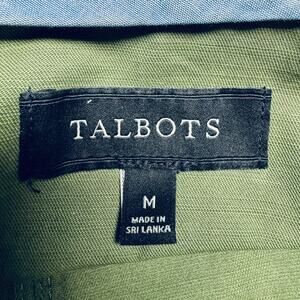 Talbots Army Green Utility Jacket Pom Pom Hemline Trim Womens Size Medium