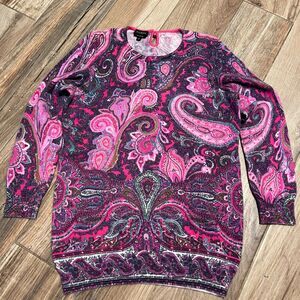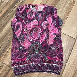 Talbots Audrey Paisley Pink & Purple Cashmere Sweater Small EUC