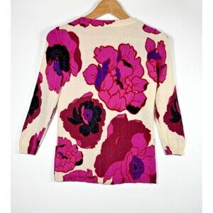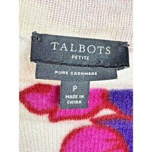 Talbots Audrey Pure Cashmere Sweater Womens Petite Pink Ivory Floral Luxe Knit