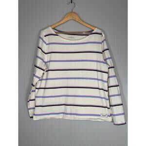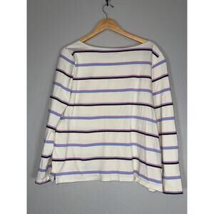 Talbots premium tee in purple blue black white vertical stripes in size XL extra large. Soft cotton jersey knit. Long sleeves. Hits At Hip. Bateau neck. Side slit hem, 100% cotton. Machine washable. Excellent preowned condition EUC, no flaws. Professional, highly rated seller, quick shipper, open to offers!