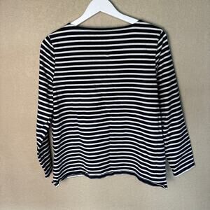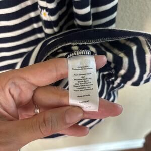 Talbots Authentic TeeTop Large Petite Blue Striped Embroidered Daisy Floral