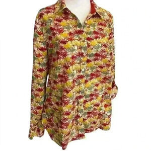 Talbots Women’s Autumn Fall Colors Long Sleeve Button-Down Shirt. Size Large