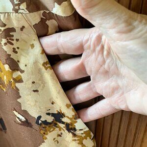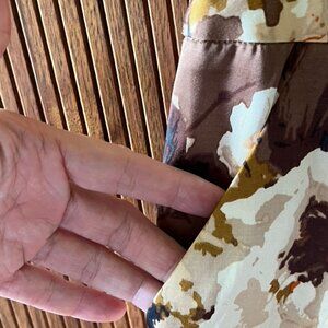Rich toned floral full skirt by Talbots in size 10. Two side pockets with side zippered waist. Satin look is easy care, machine wash viscose, cotton, spandex blend. It is fully lined in matching polyester. See close up photo of fabric content. Knee Length. In excellent condition. Smoke free and pet free home.