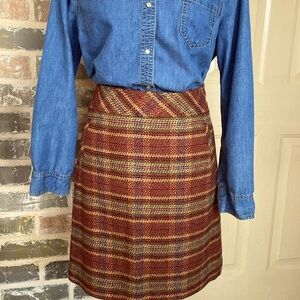 NWT Talbots Wool Blend A-Line Pencil Skirt Plaid Tweed Lined Fall Winter Weight Size 6 Petite. Side slash pockets and a hidden side zipper. Awesome color combo in Fall and Winter colors. Cranberry Burgundy Redish Maroon Golden Tan Bluish Gray & Green. Brand new condition.