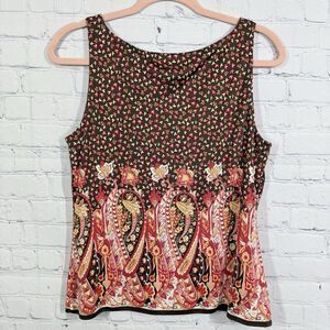 Talbots Babydoll Blouse Women Size 12 100% Silk Sleeveless Floral Boho Y2K Top