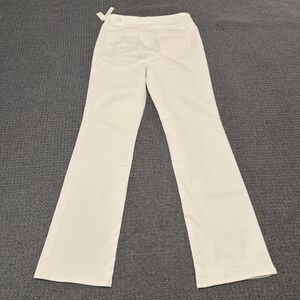 Talbots Barely Boot Jean in white, womens size 8. High waist, bootcut, full length with a slimming panel for a smooth, flattering fit. Crafted from a soft cotton-blend with stretch for comfort. Classic five-pocket design, zip fly with button closure.